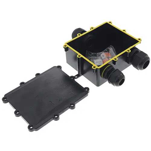 De lasdoos kabelverbinder is vervaardigd van hard plastic en is geschikt voor twee extra grotere kabels van Ø tot 19mm, en één kleine kabel aansluiting tot maximaal Ø tot 14mm. Deze waterdichte kabelverbinder wordt standaard plug & play geleverd zodat je hem snel en meteen in gebruik kan nemen. Ook is de verbinder IP68 waterdicht en zelfs bestand tegen onderdompeling voor kortere tijd, maar kan ook gewoon onder de grond gebruikt worden tot 4-meter.