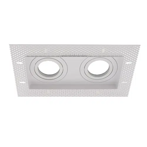 LED trimless stucframe spot armatuur dubbel vierkant WIT. Tevens zijn er veel lampen die in dit armatuur gebruikt kunnen worden, zowel 220Volt lampen als 12Volt lampen. Het grote voordeel van dit armatuur is dat deze trimless is. Dit houdt in dat je geen rand ziet. Met de zwarte vleugels bevestig je het armatuur aan het plafond. Vervolgens moet de stukadoor hier overheen met het stucwerk zodat het prachtig weg valt in het plafond.