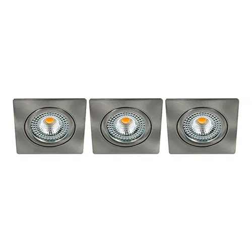 Set 3x Bella Ondiepe LED spot kantelbaar 5Watt vierkant NIKKEL dimbaar – interne driver