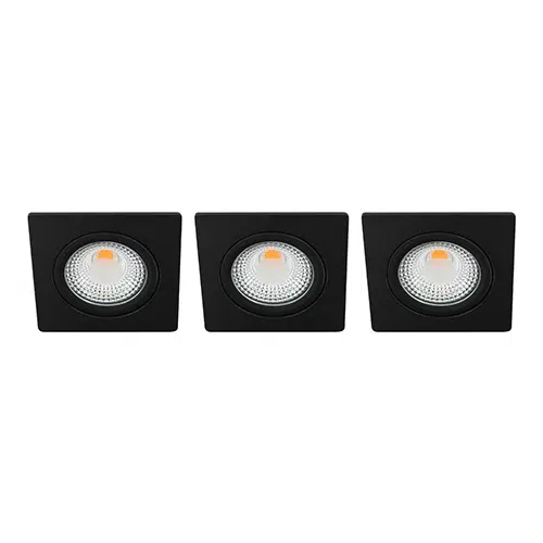 Set 3x Bella Ondiepe LED spot kantelbaar 5Watt vierkant ZWART IP65 dimbaar
