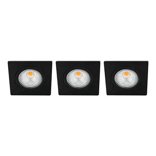 Set 3x Bella Ondiepe LED spot kantelbaar 5Watt vierkant ZWART IP65 dimbaar
