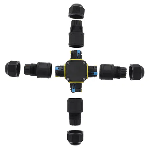 De kabelverbinder is vervaardigd van hard plastic en is geschikt voor vier kabels tot maximaal Ø tot 10mm. Deze waterdichte kabelverbinder wordt standaard plug & play geleverd zodat je hem snel en meteen in gebruik kan nemen. Ook is de verbinder IP68 waterdicht en zelfs bestand tegen onderdompeling voor kortere tijd, maar kan ook gewoon onder de grond gebruikt worden tot 4-meter.