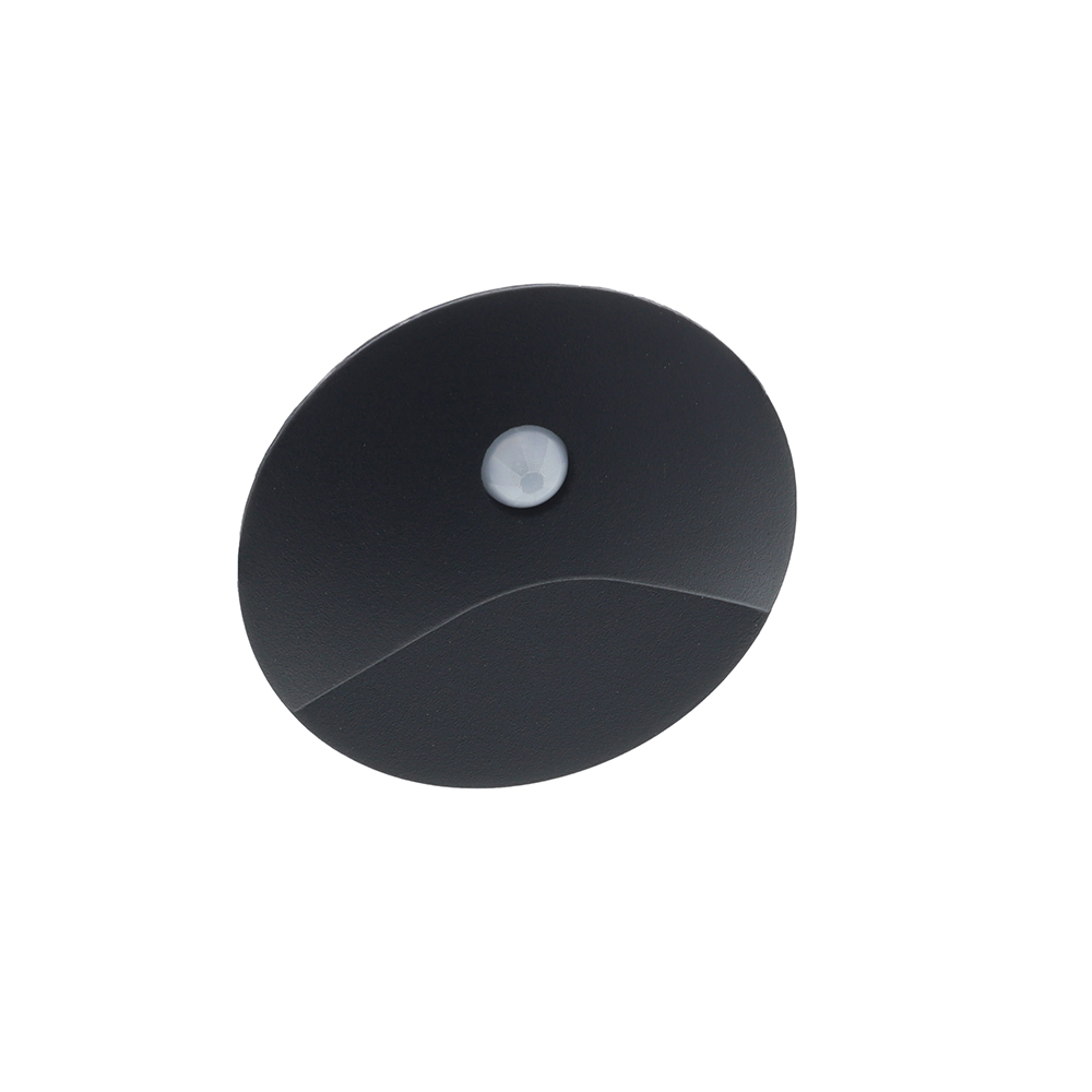 Vince LED IP65 wand-trapverlichting 3Watt ZWART rond PIR sensor